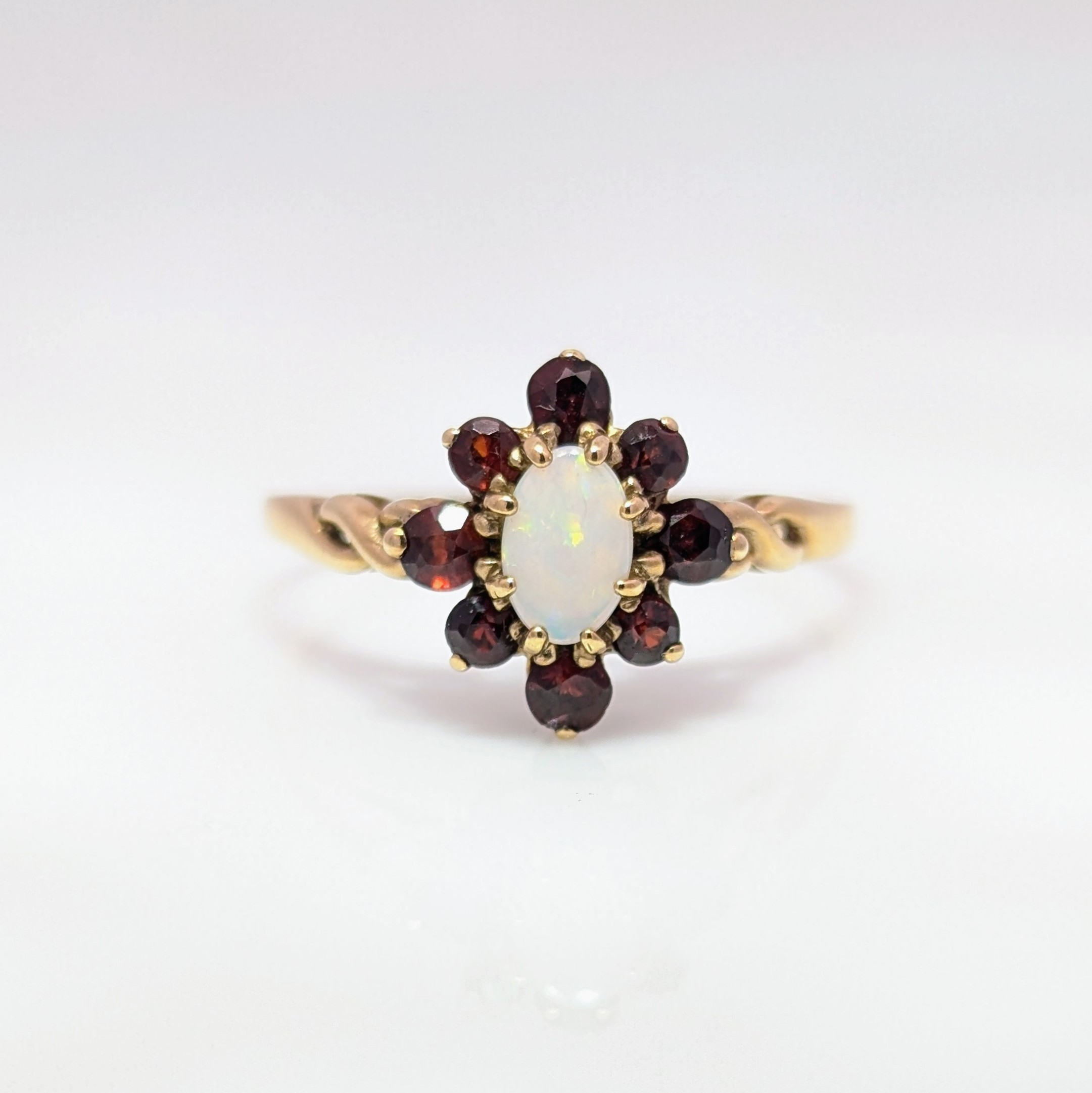 Pre-Loved Oval Opal and Garnet Cluster Ring 9k Yellow Gold | 26427