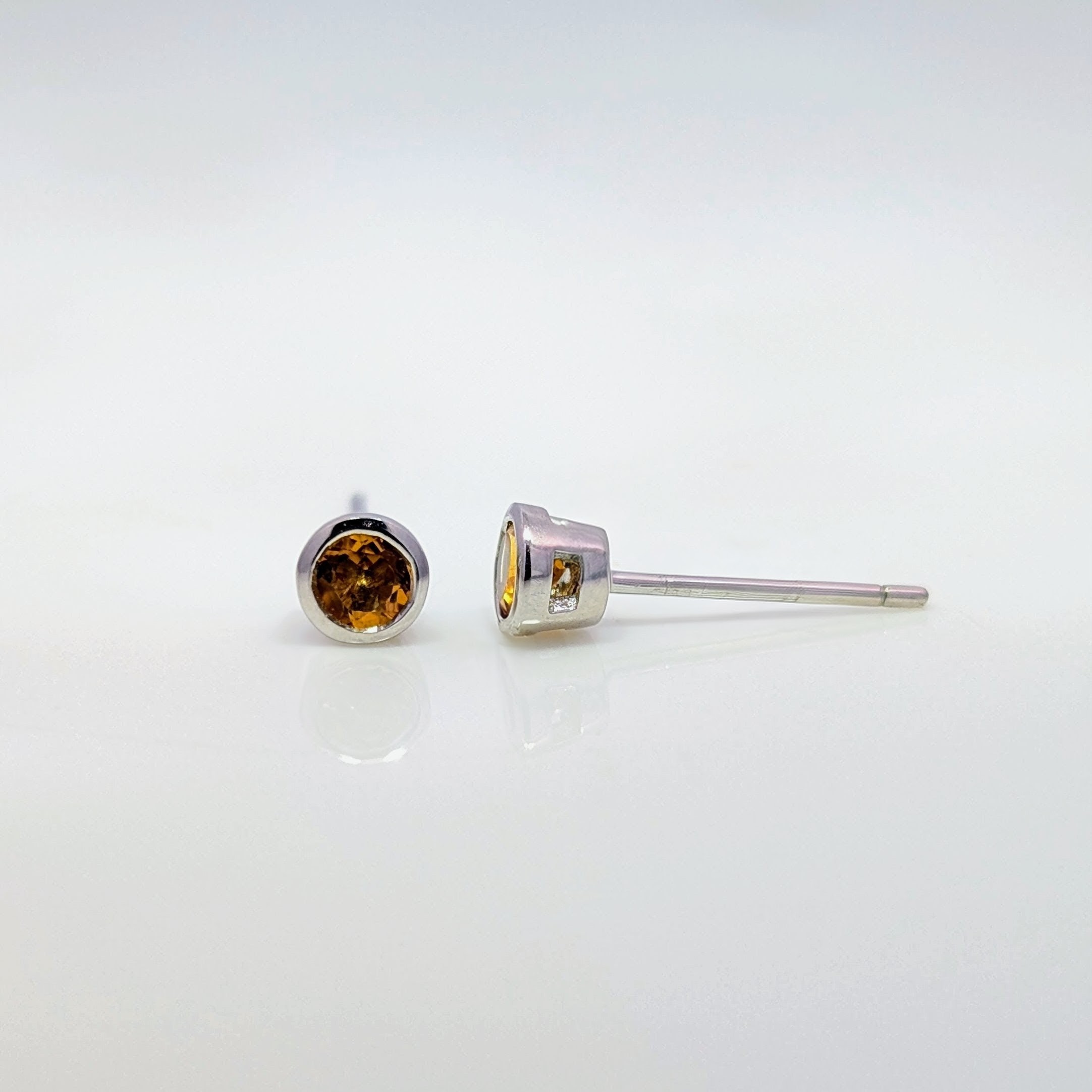 3mm Citrine Earring Bezel Studs 9k White Gold | 38814