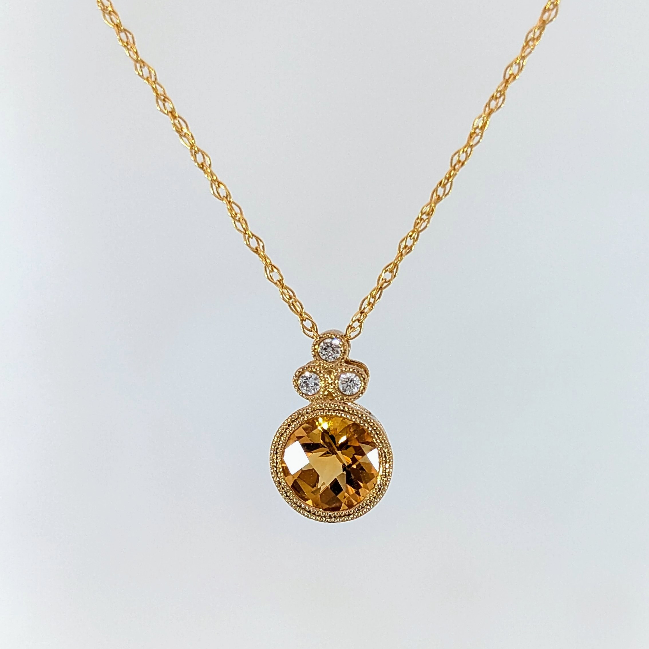 Citrine & Diamond Necklace 9k Yellow Gold | 34363
