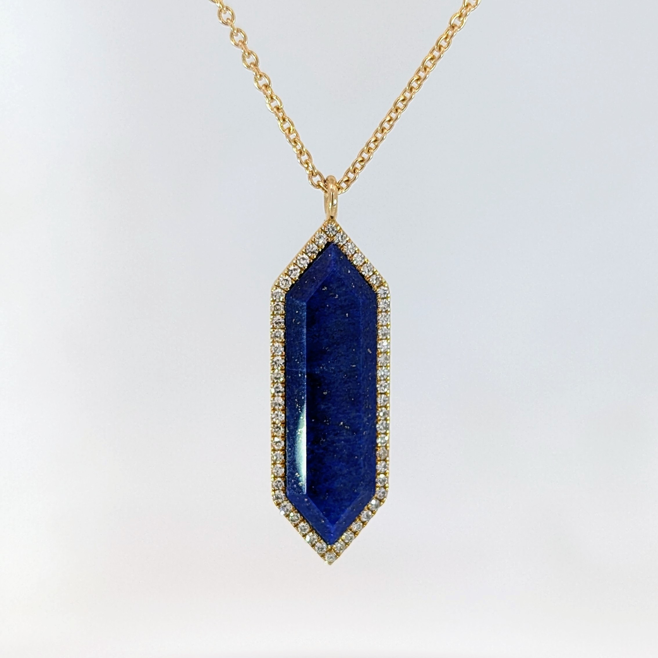 Deep Blue Lapis Stone & Diamond Necklace 9k Yellow Gold | 43465
