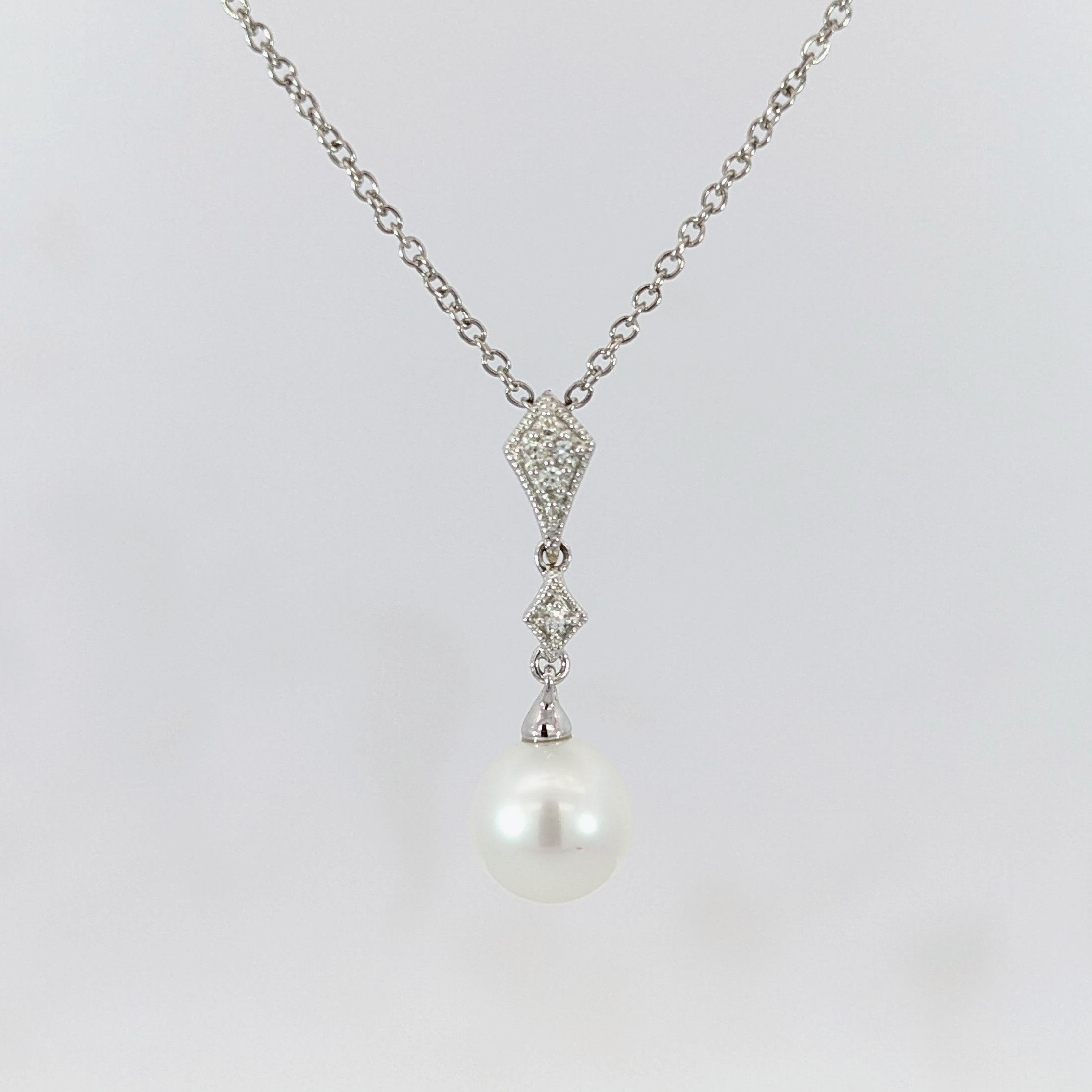 Fresh Water Pearl & Diamond Pendant 9k White Gold | 33506