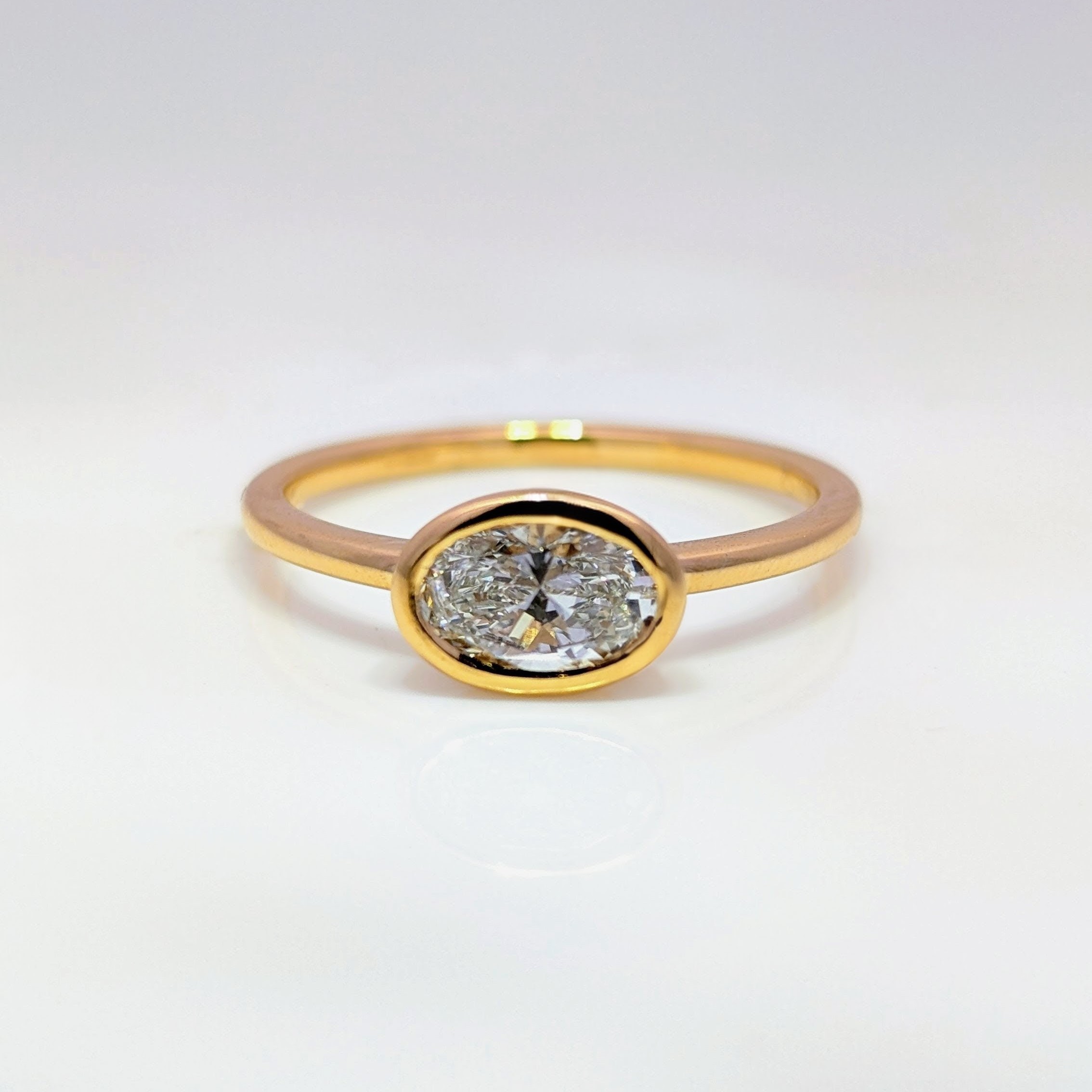 0.74ct Lab-Grown Oval Diamond Bezel Ring 9k Yellow Gold | 43425