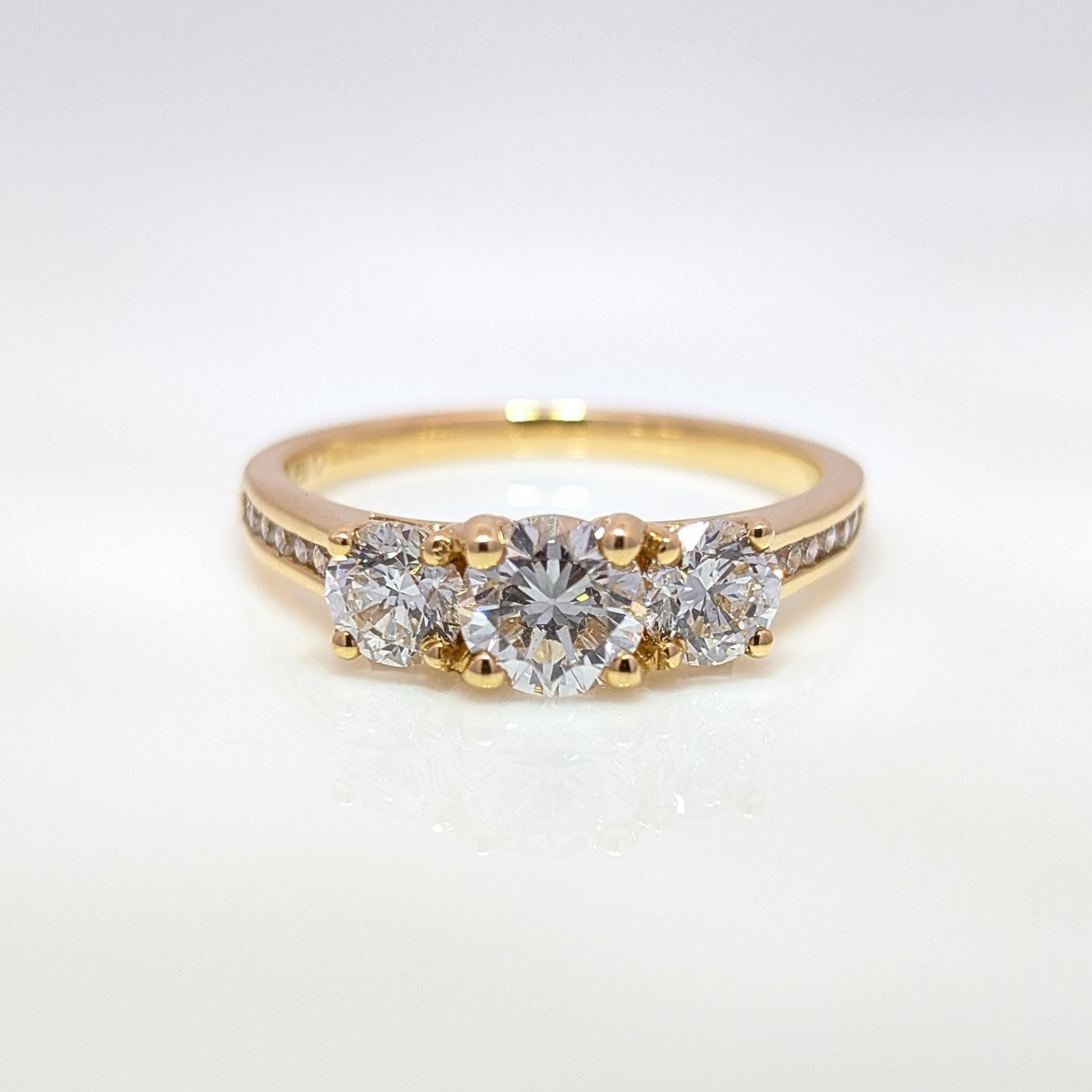 1.75ct Trilogy Round Brilliant Cut Diamond Ring with Diamond Shoulders 18k Yellow Gold | 34660
