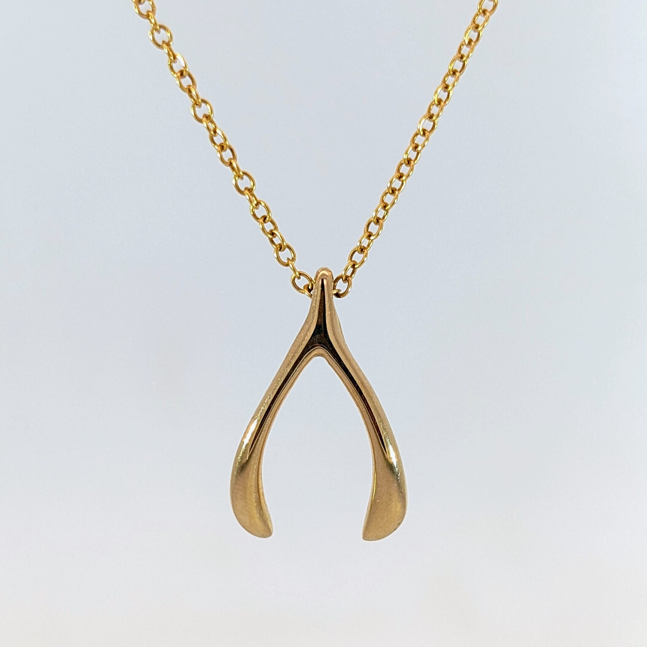Wishbone Necklace 9ct Yellow Gold 18″ adjustable Belcher chain | 16510