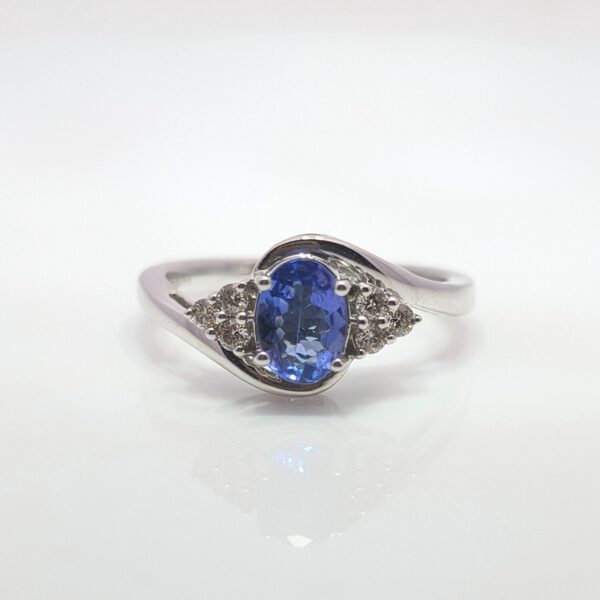 Tanzanite and Diamond Twist Ring 9k White Gold | 32182