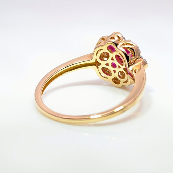 Floral Design Ruby and Diamond Halo Ring 14ct Yellow Gold | 1033626