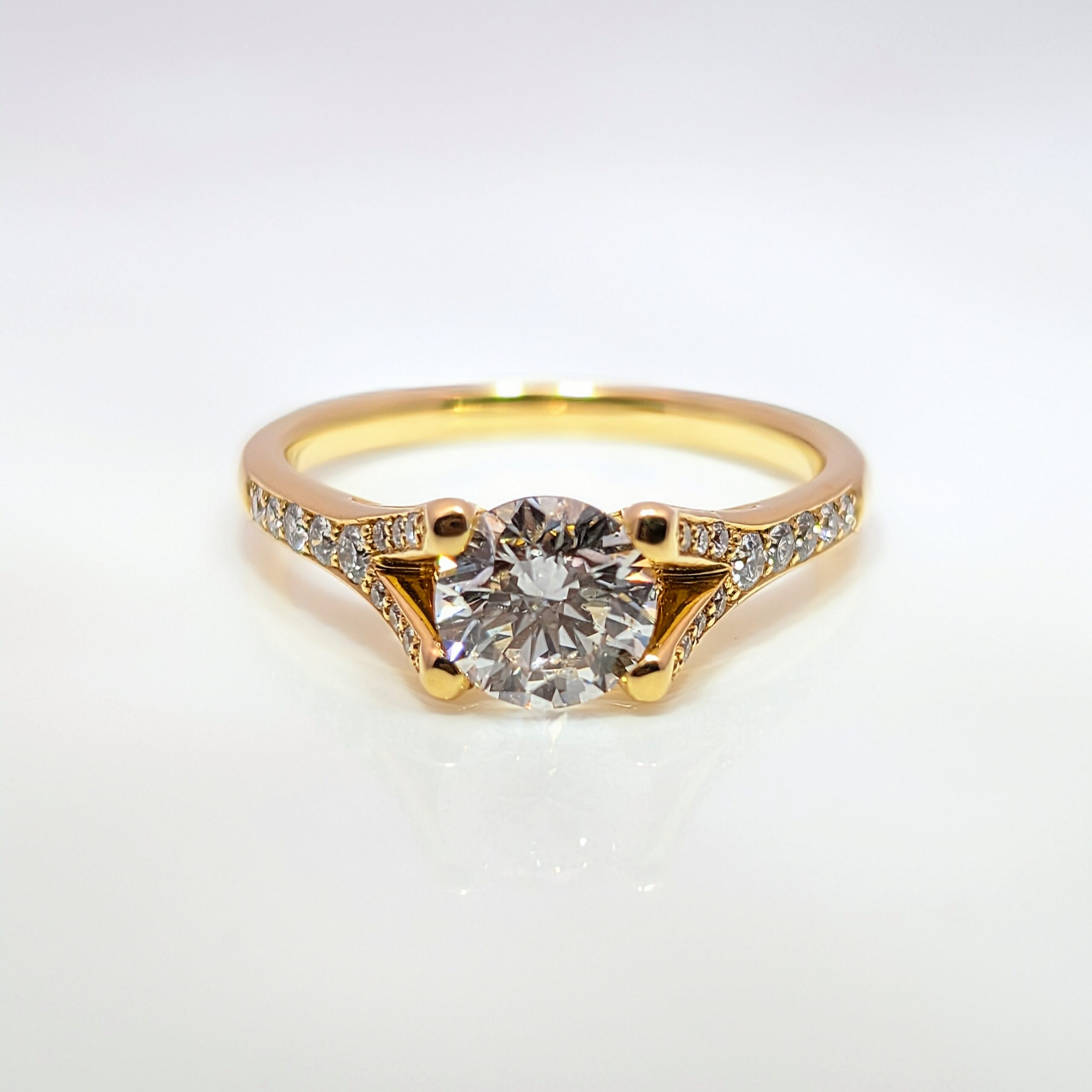 1.28ct Round Brilliant Cut Diamond Ring with Diamond Set Shoulders 18k Yellow Gold | 14008