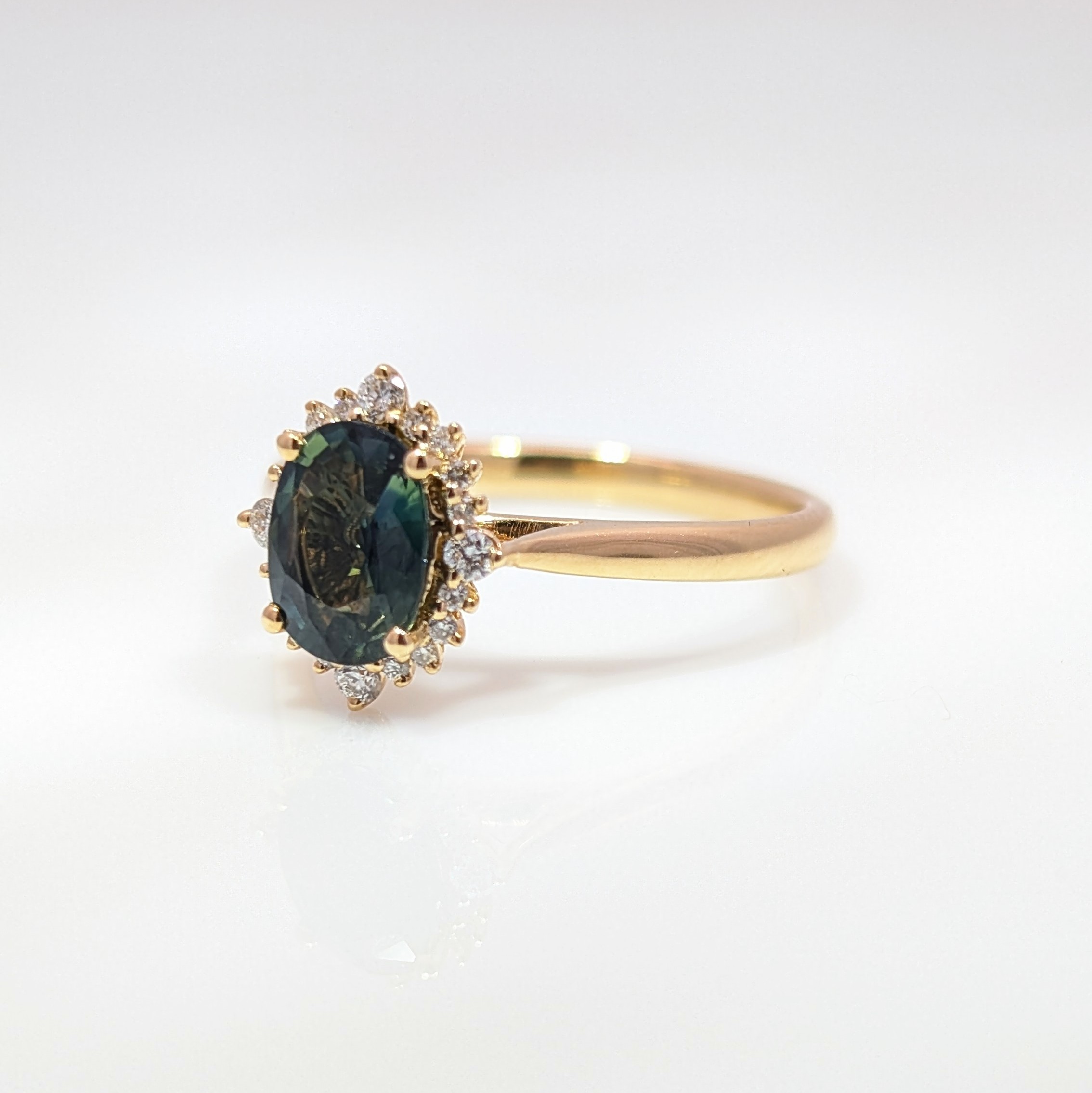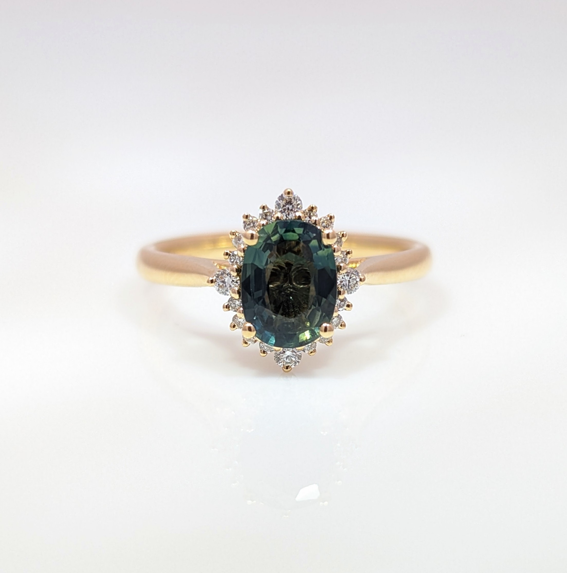 1.08ct Oval Green Sapphire and Diamond Cluster Ring 18k Yellow Gold | 44374