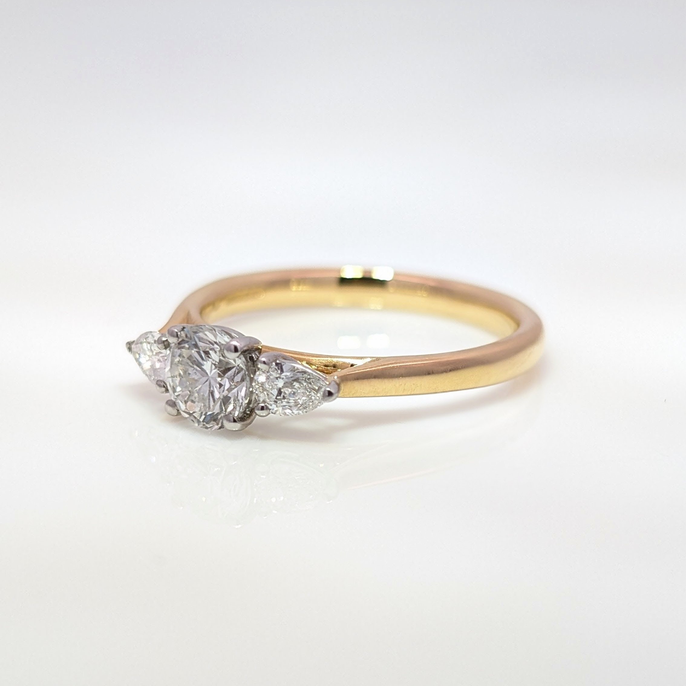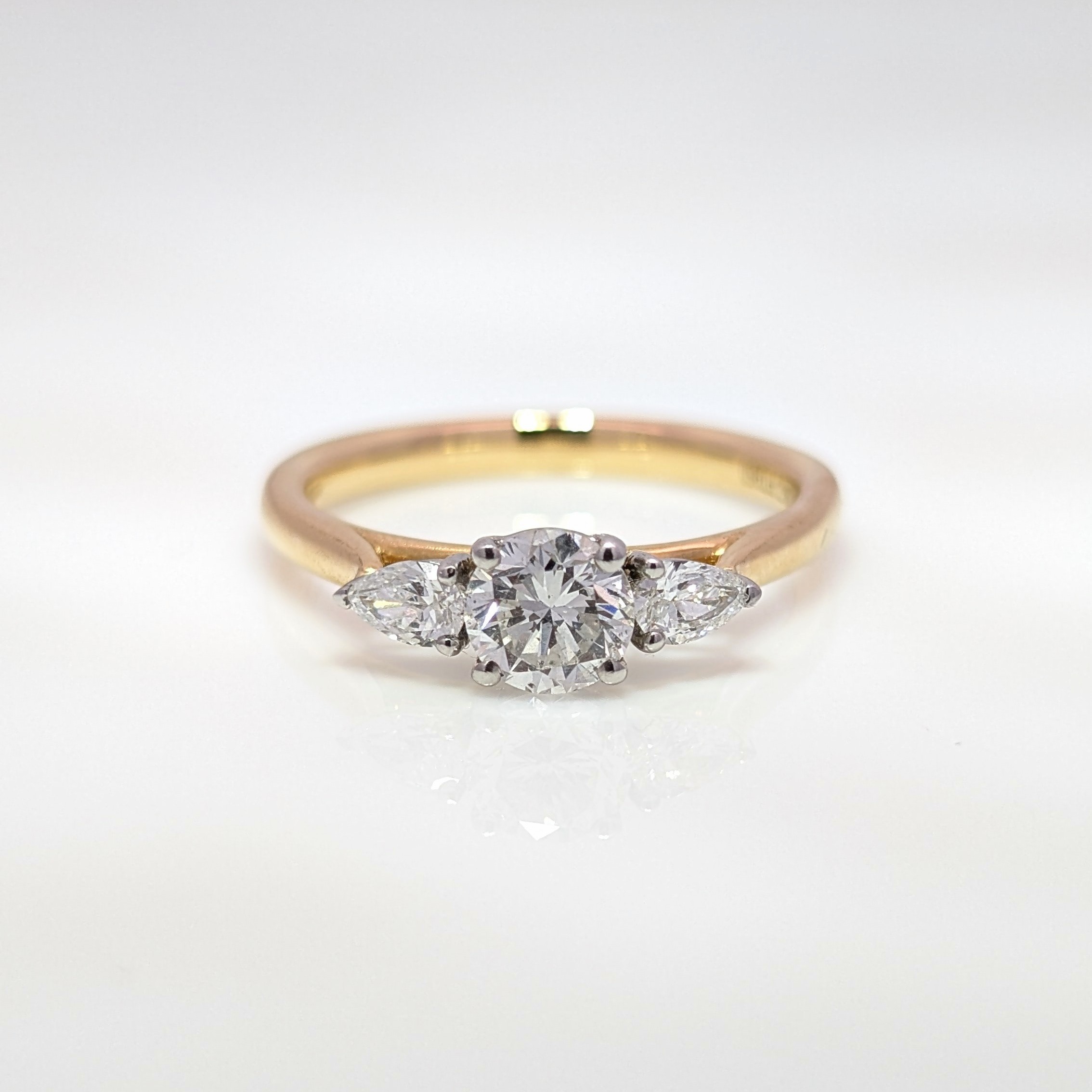 1.13ct Trilogy Round & Pear Cut Diamond Ring 18k Yellow Gold & Platinum | 42307