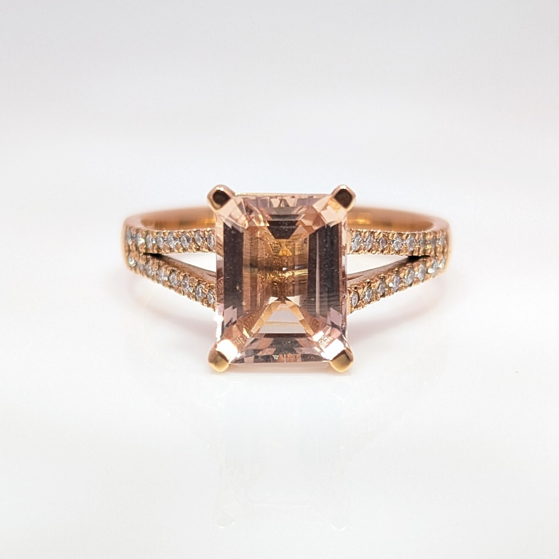 9×7 Morganite Ring with Diamond Shoulders 18k Rose Gold | 38560