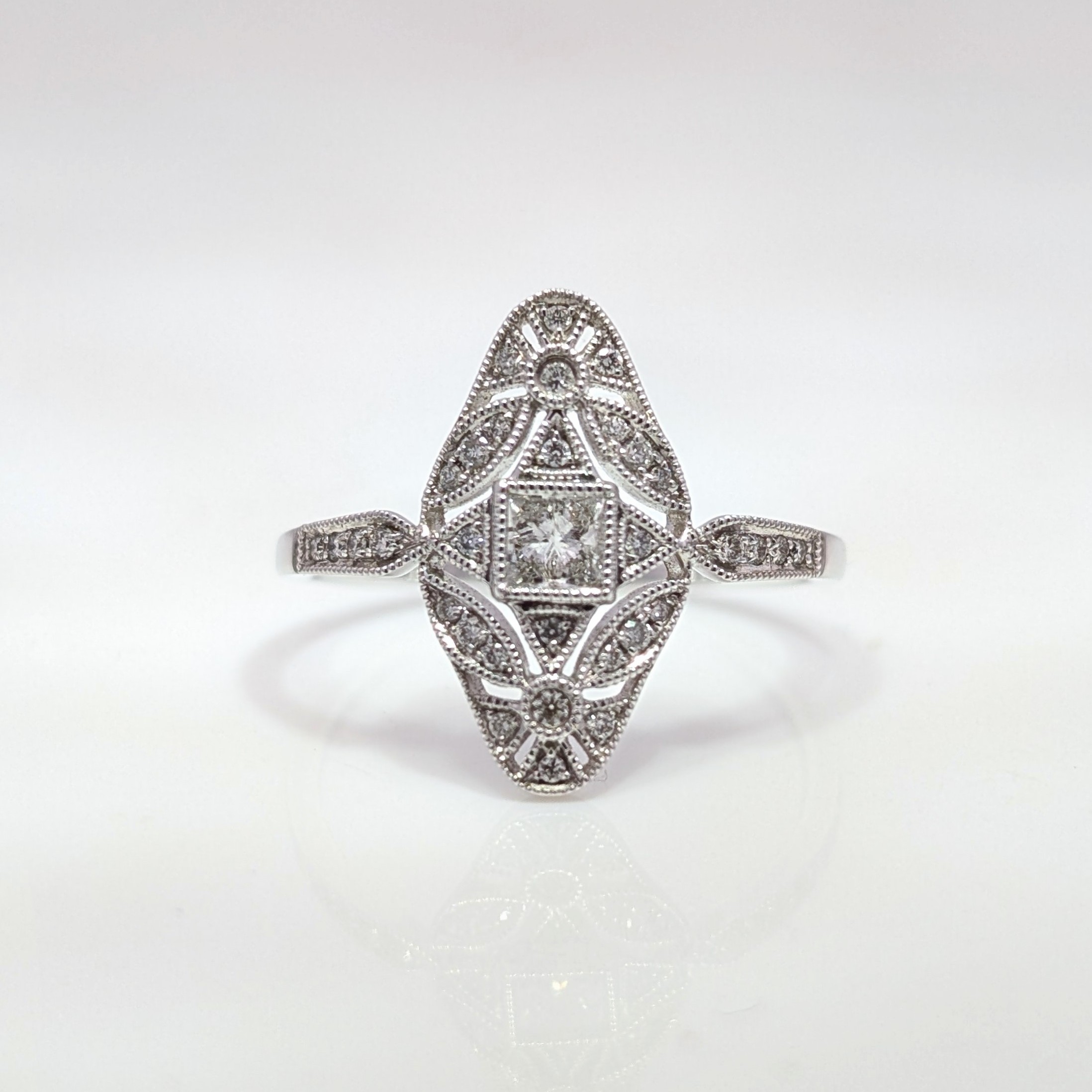 0.30ct Diamond Art Deco Style Ring 18k White Gold | 21101