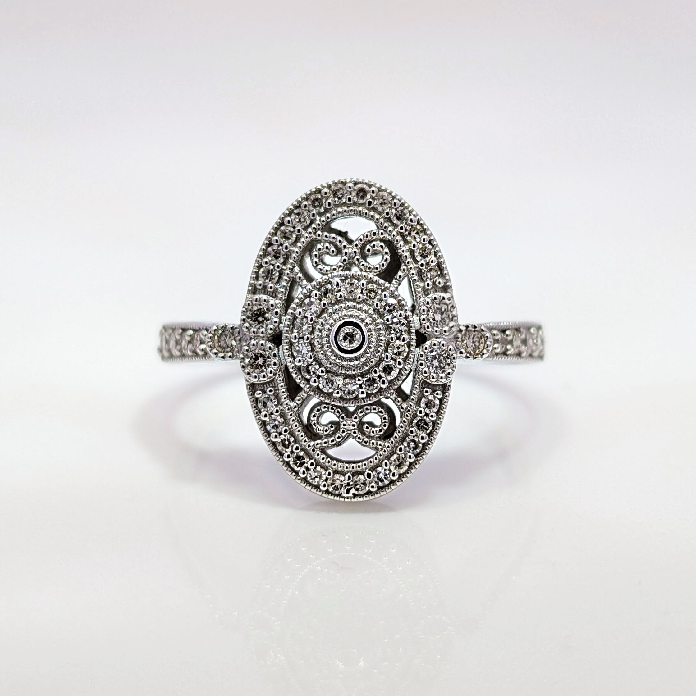 0.33ct Diamond Art Deco Style Ring 9k White Gold | 32181