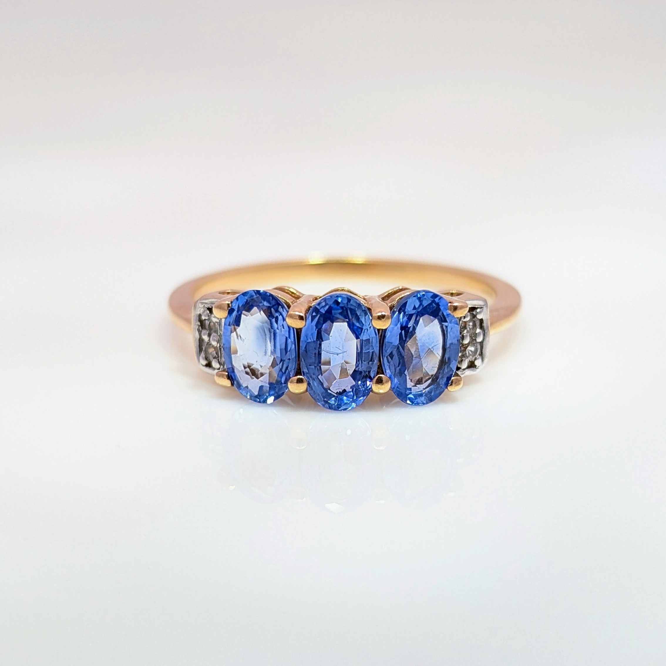 Pre-Loved Oval Trilogy Tanzanite & Diamond Ring 9k Yellow Gold | 35957
