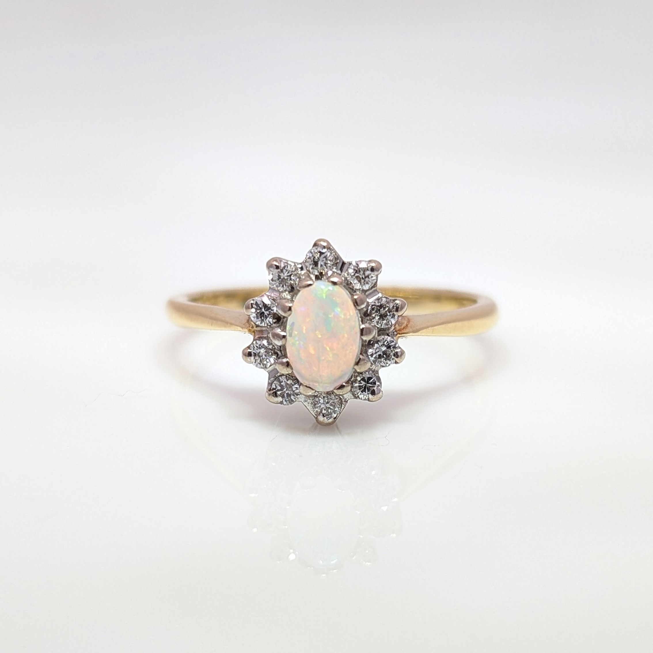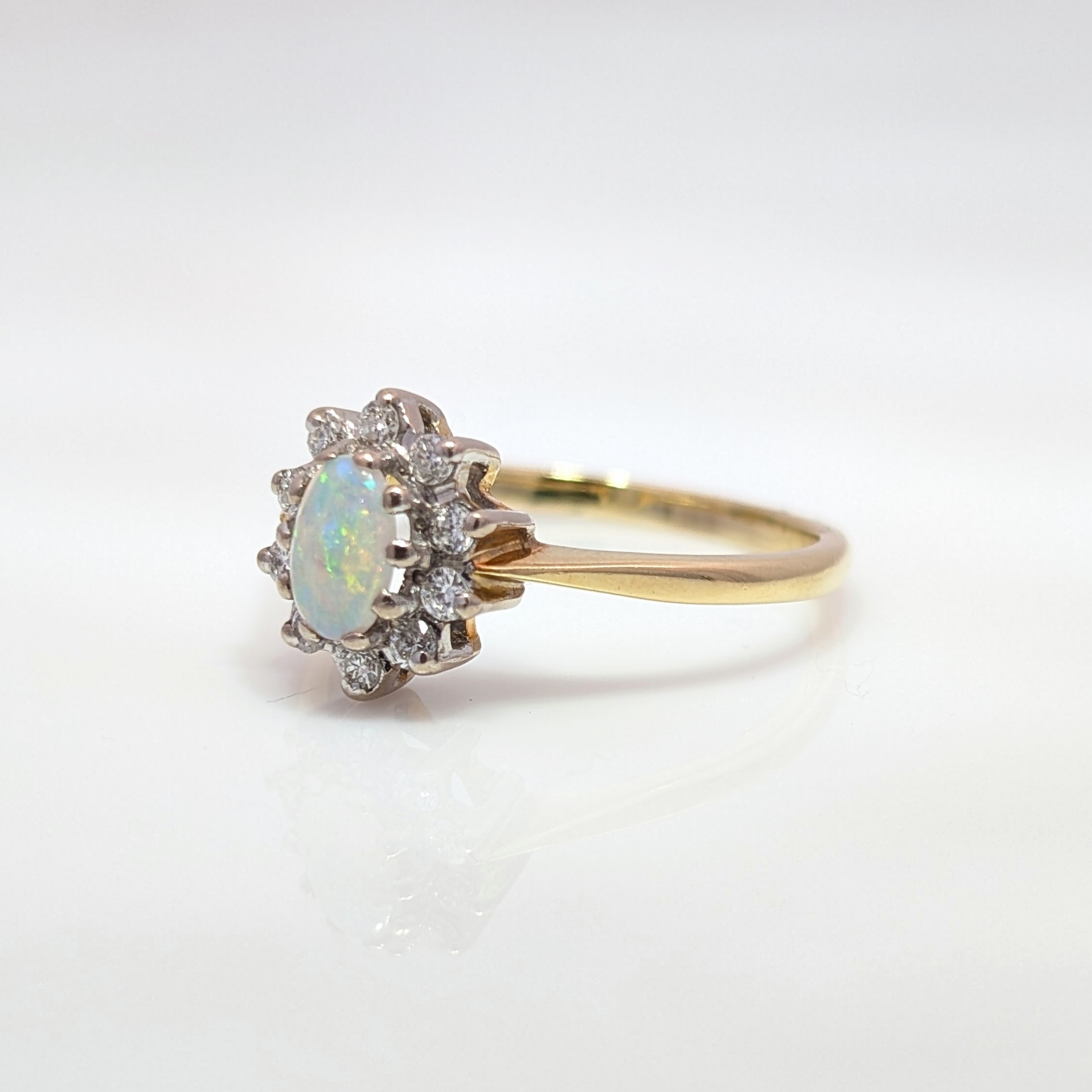 Pre-Loved Oval Opal & Diamond Cluster Ring 18k Yellow Gold | 37163