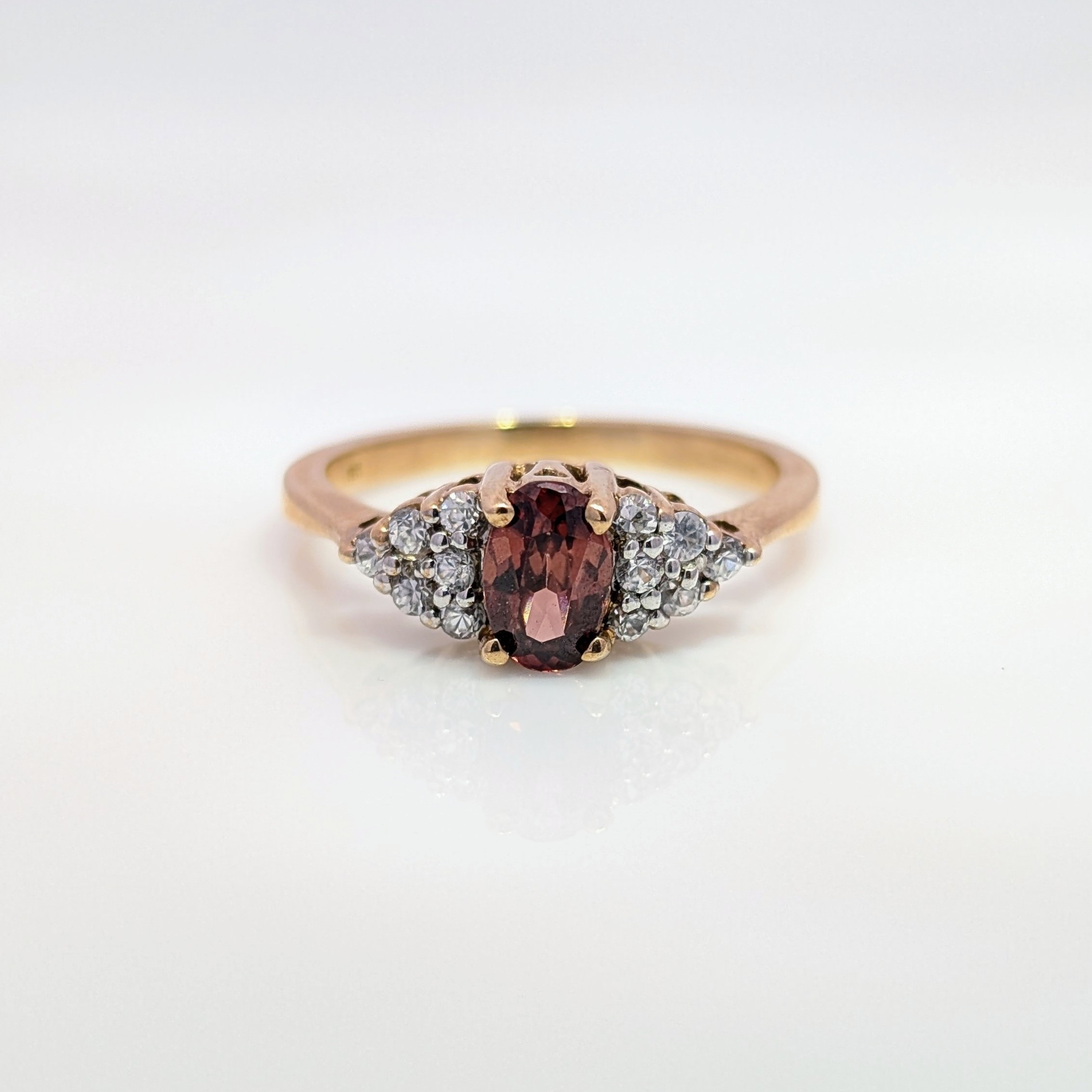 Pre-Loved Oval Garnet & Diamond Ring 9k Yellow Gold | 40473
