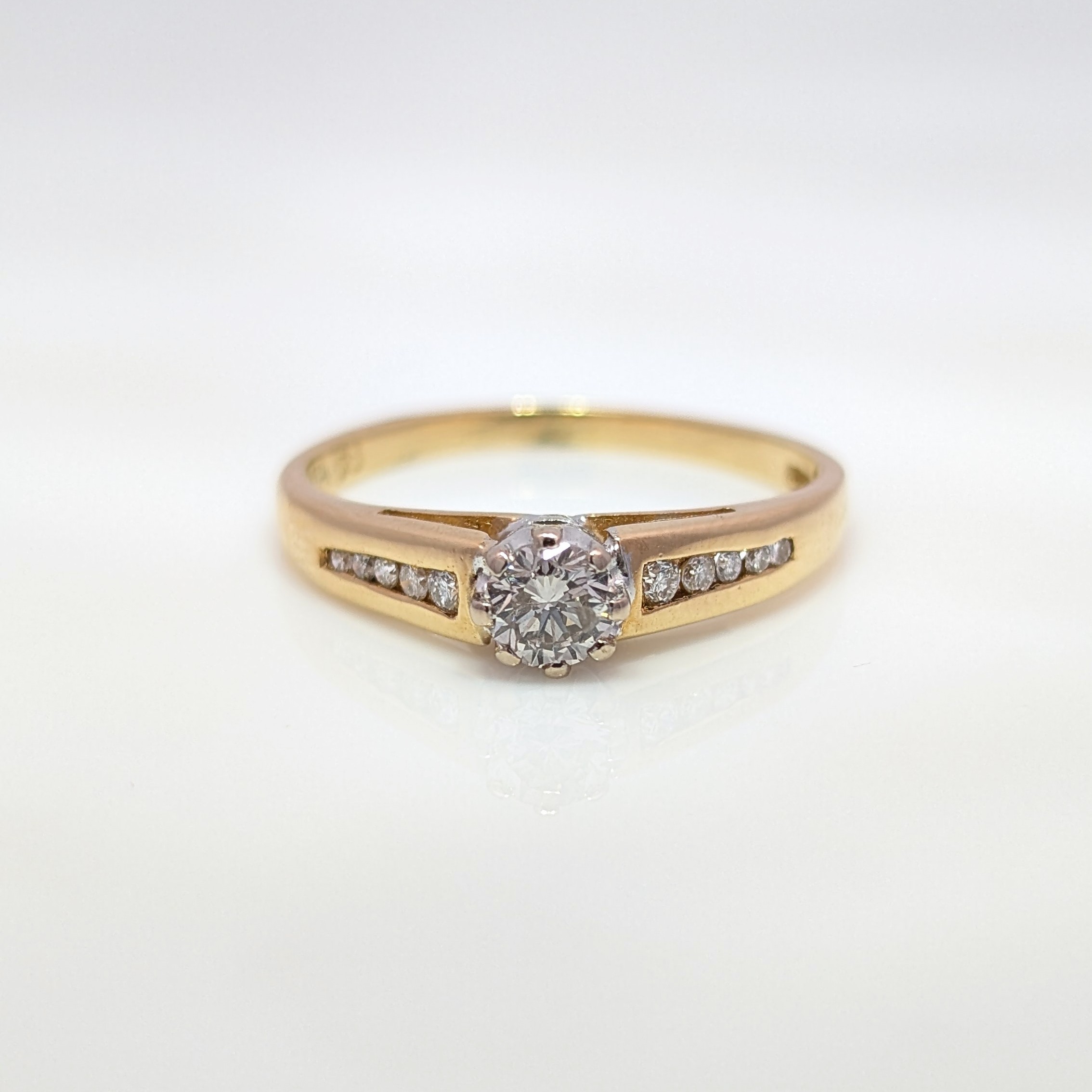 Pre-Loved Round Brilliant Cut Diamond with Bezel Set Diamond Shoulders 18k Yellow Gold | 40955
