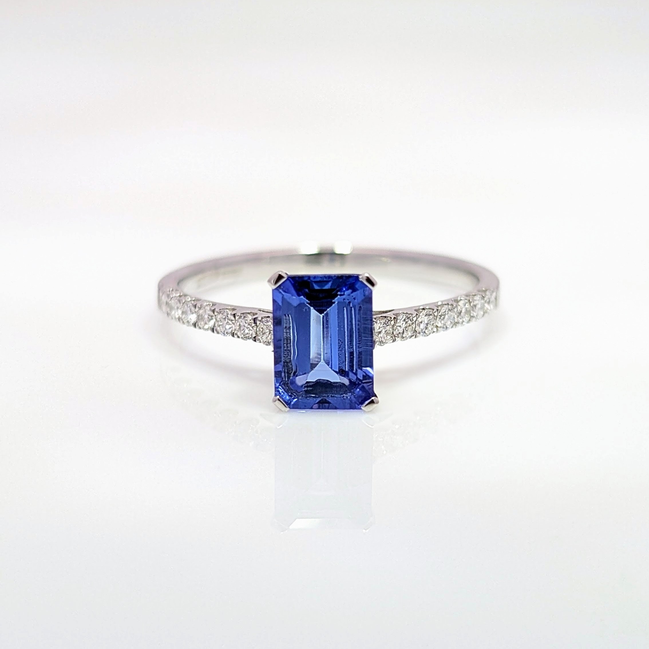 1.05ct Tanzanite & Diamond Set Shoulder Ring 18k White Gold | 21740