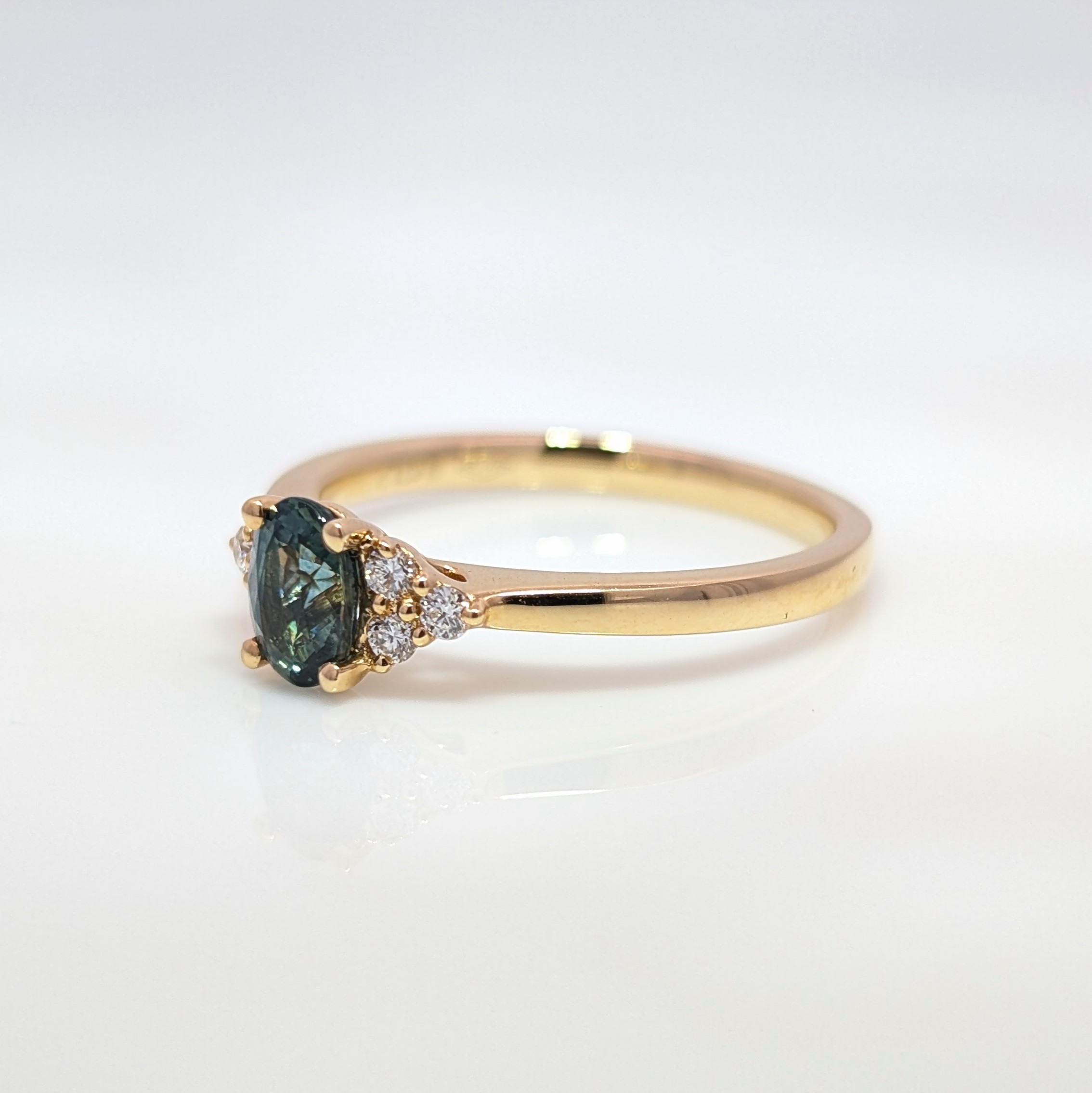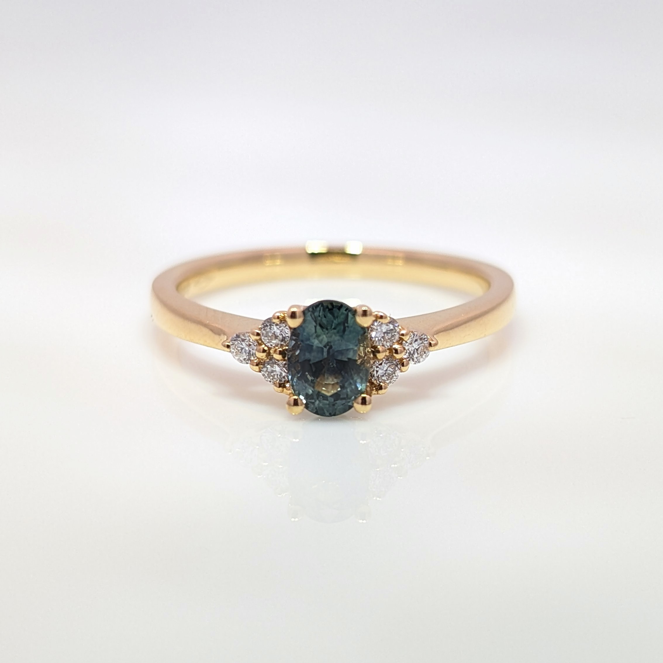 0.71ct Oval Green Sapphire & Diamond Engagement Ring 18k Yellow Gold | 41718