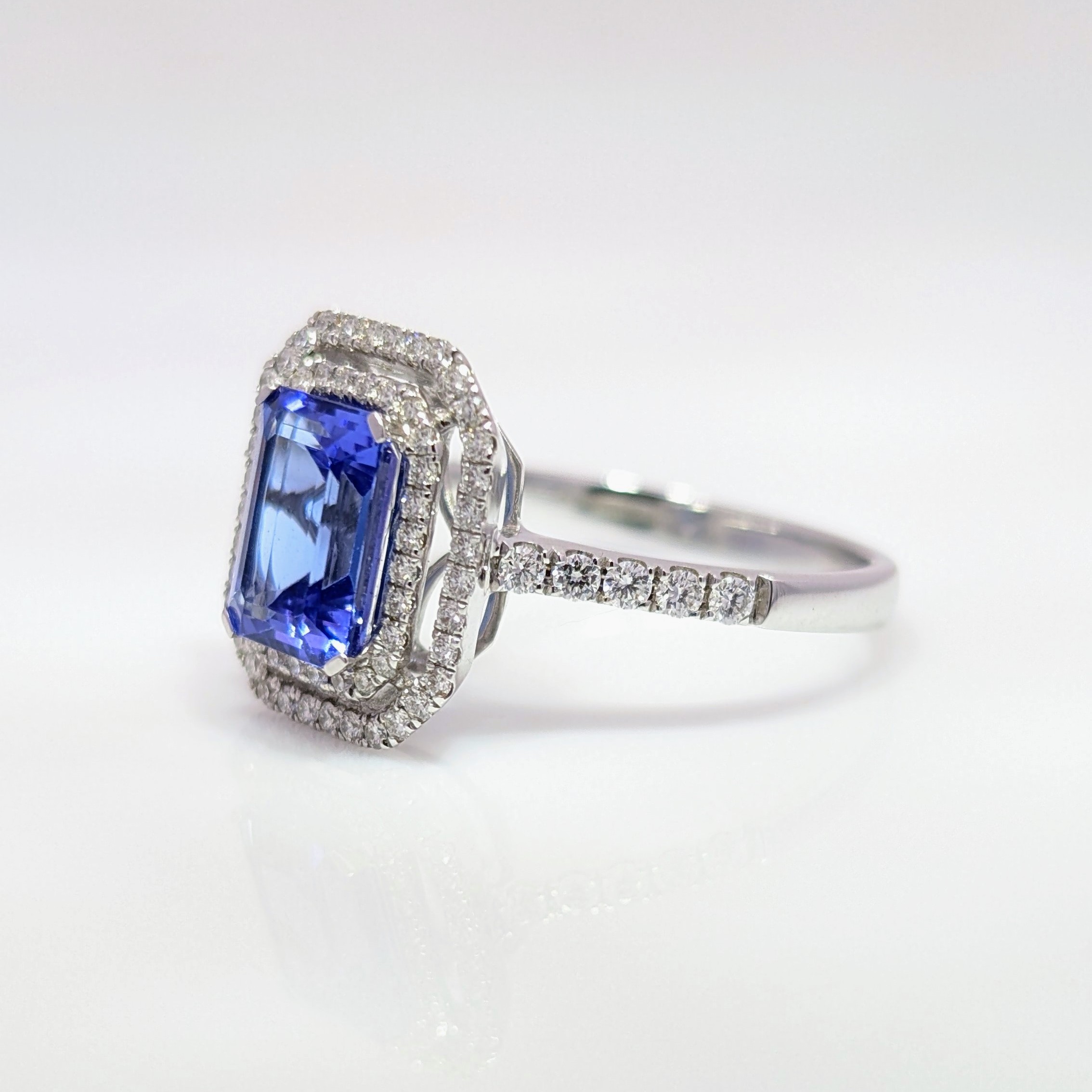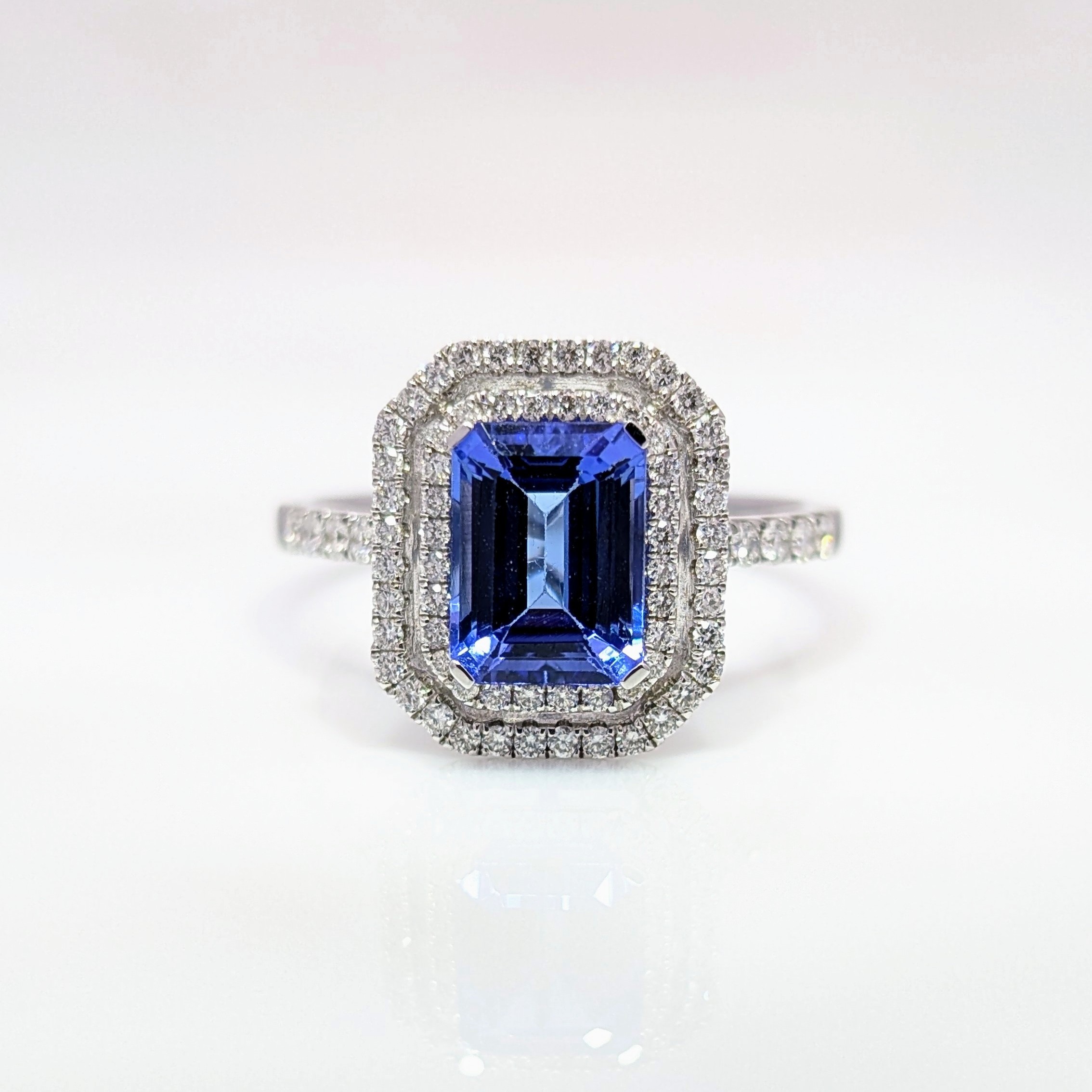 1.76ct Tanzanite & Diamond Double Cluster Ring 18k White Gold | 21737