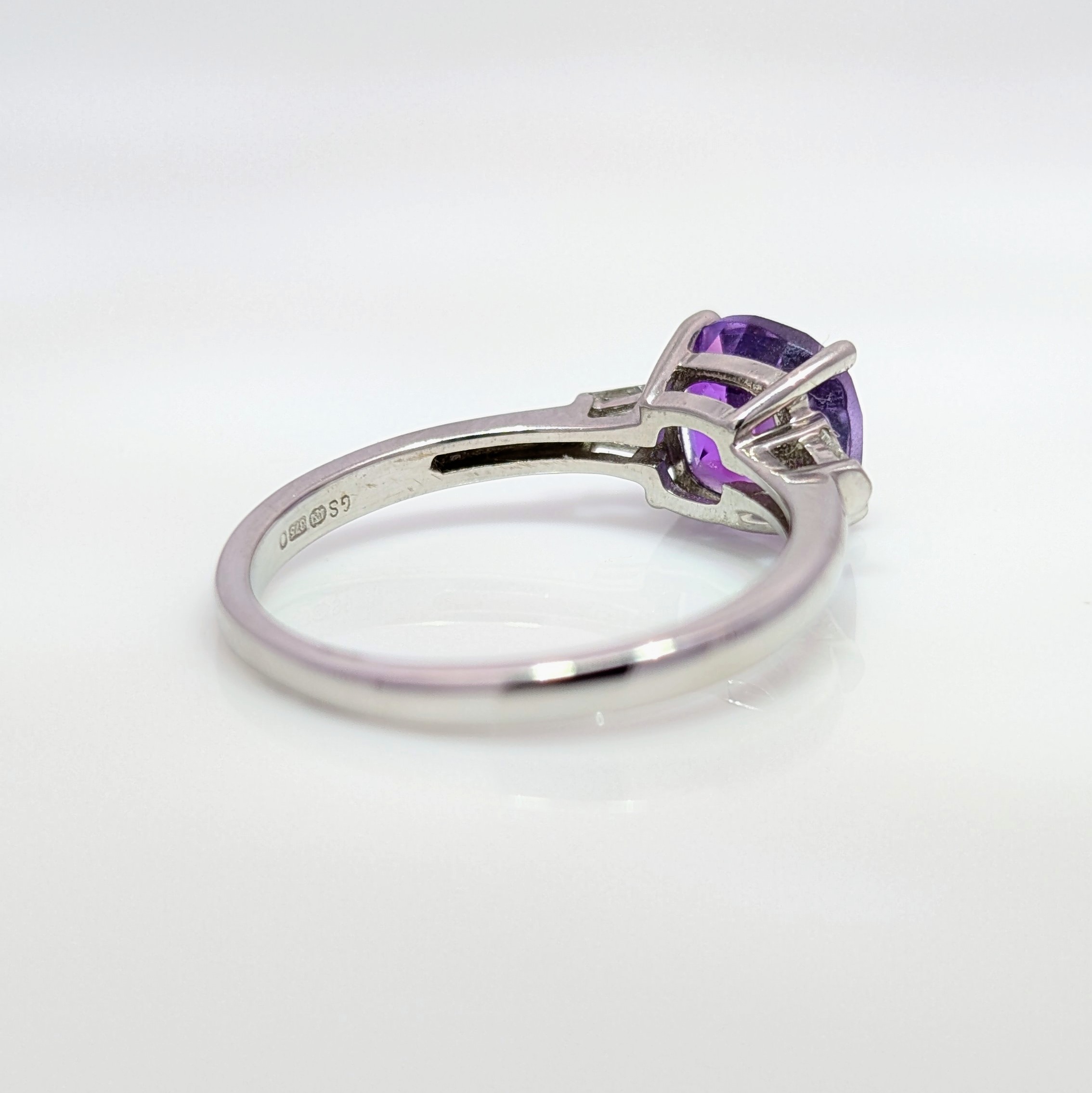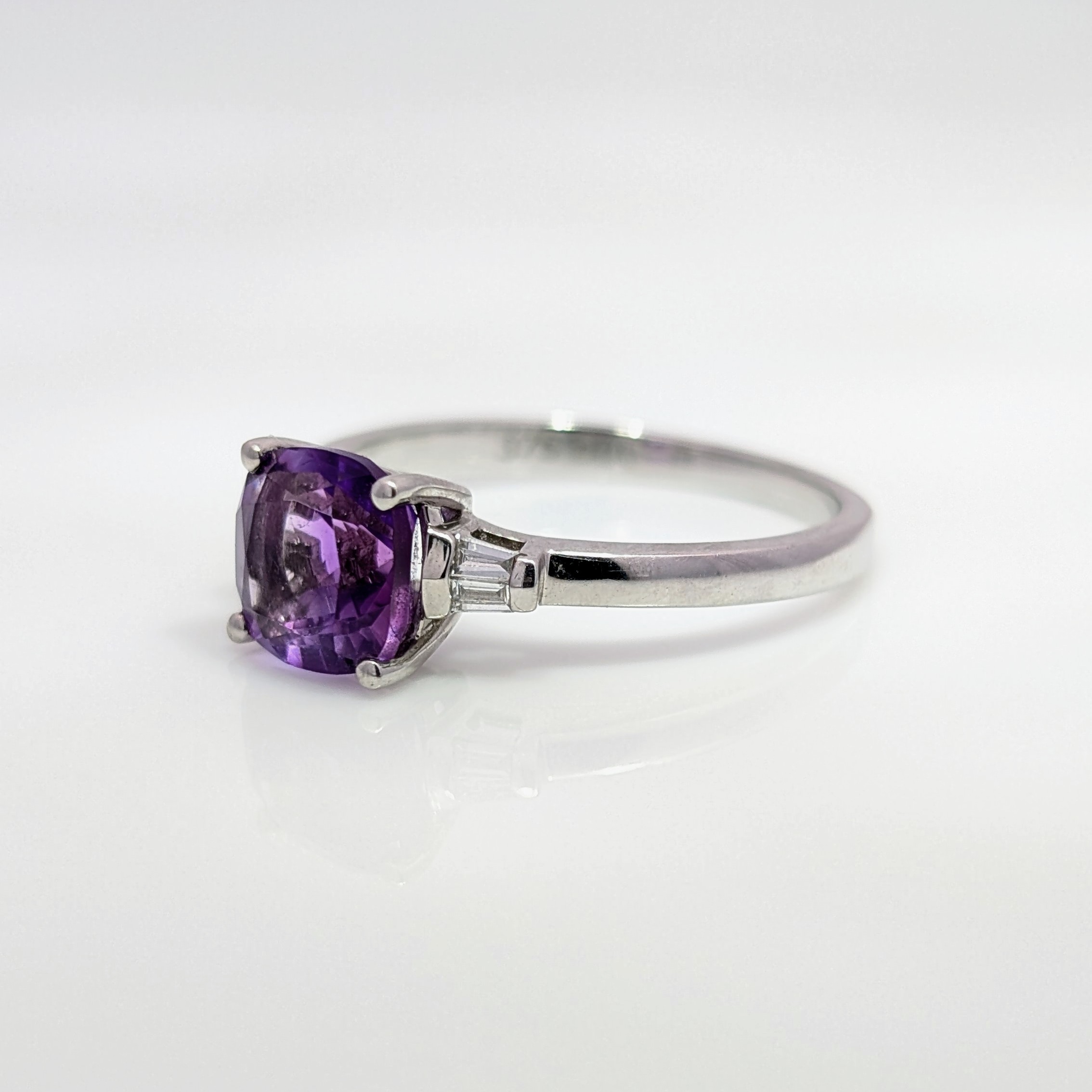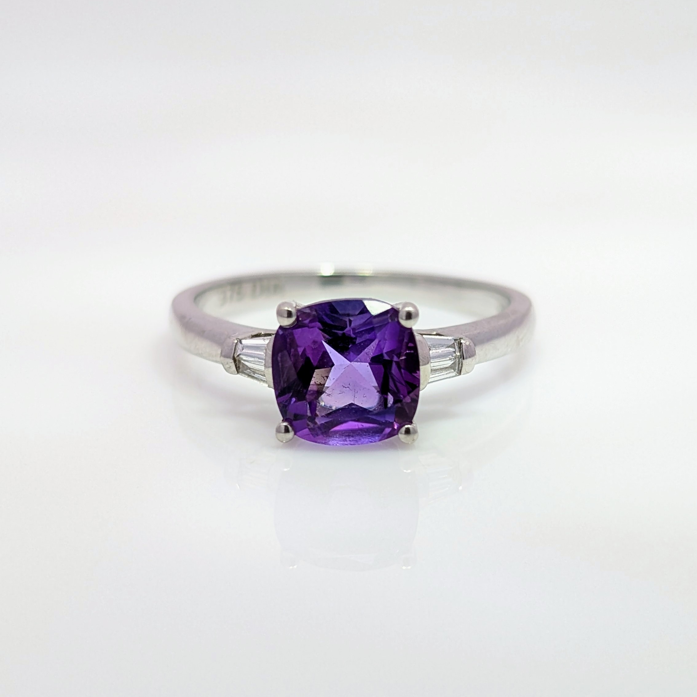 Cushion Shaped Amethyst & Diamond Ring 9k White Gold | 25464